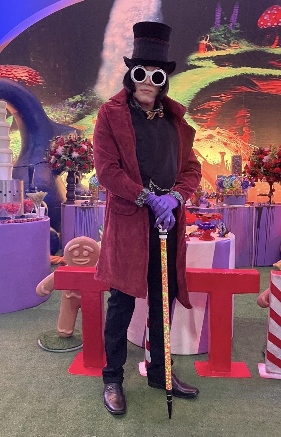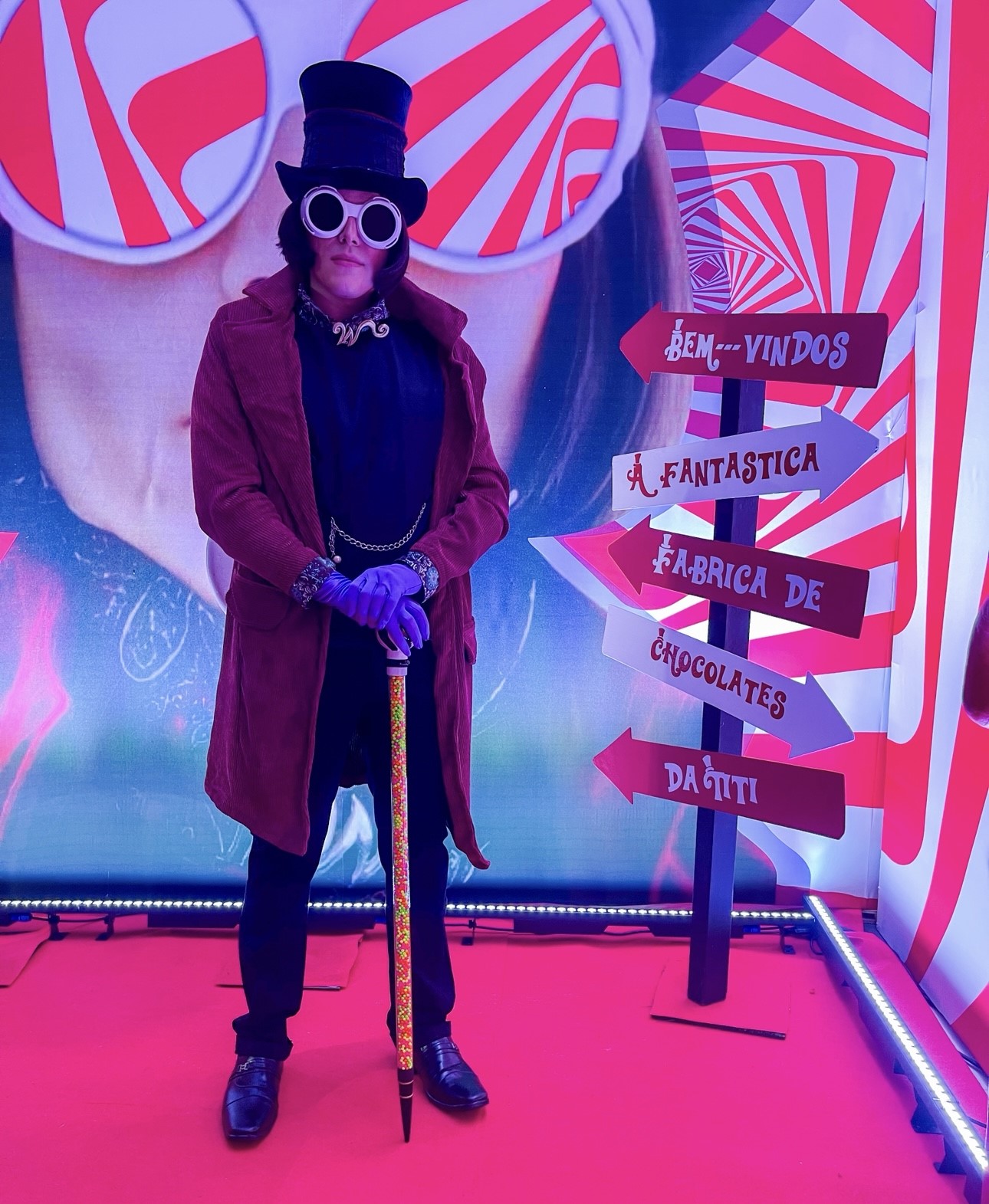 Inspirado no universo mágico de Willy Wonka, o personagem traz para eventos corporativos toda a fantasia e o encanto da famosa fábrica de chocolates apresentada no clássico Charlie and the Chocolate Factory. Empresas que buscam experiências criativas e memoráveis encontram nesse personagem uma excelente oportunidade para realizar ações promocionais, campanhas internas e eventos de endomarketing com grande impacto no público.